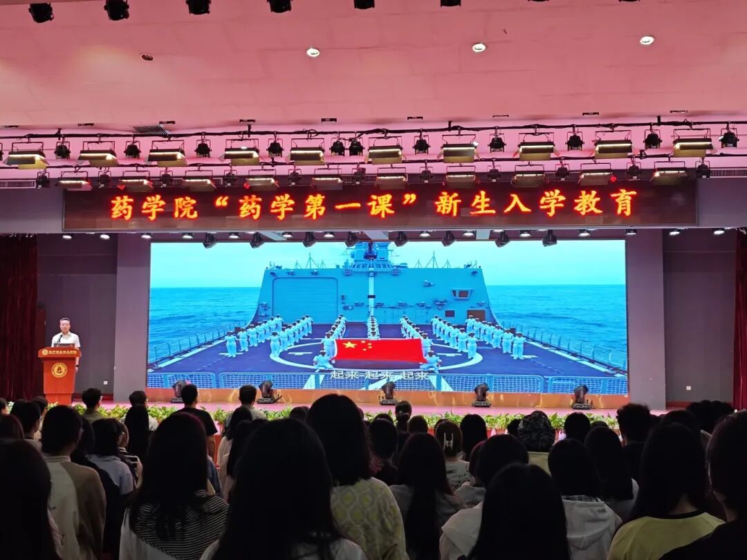 大会在庄严的国歌中拉开帷幕,随后全体师生一起观看了药学院宣传片,直观生动的了解了药学院的发展历程和专业概况等。