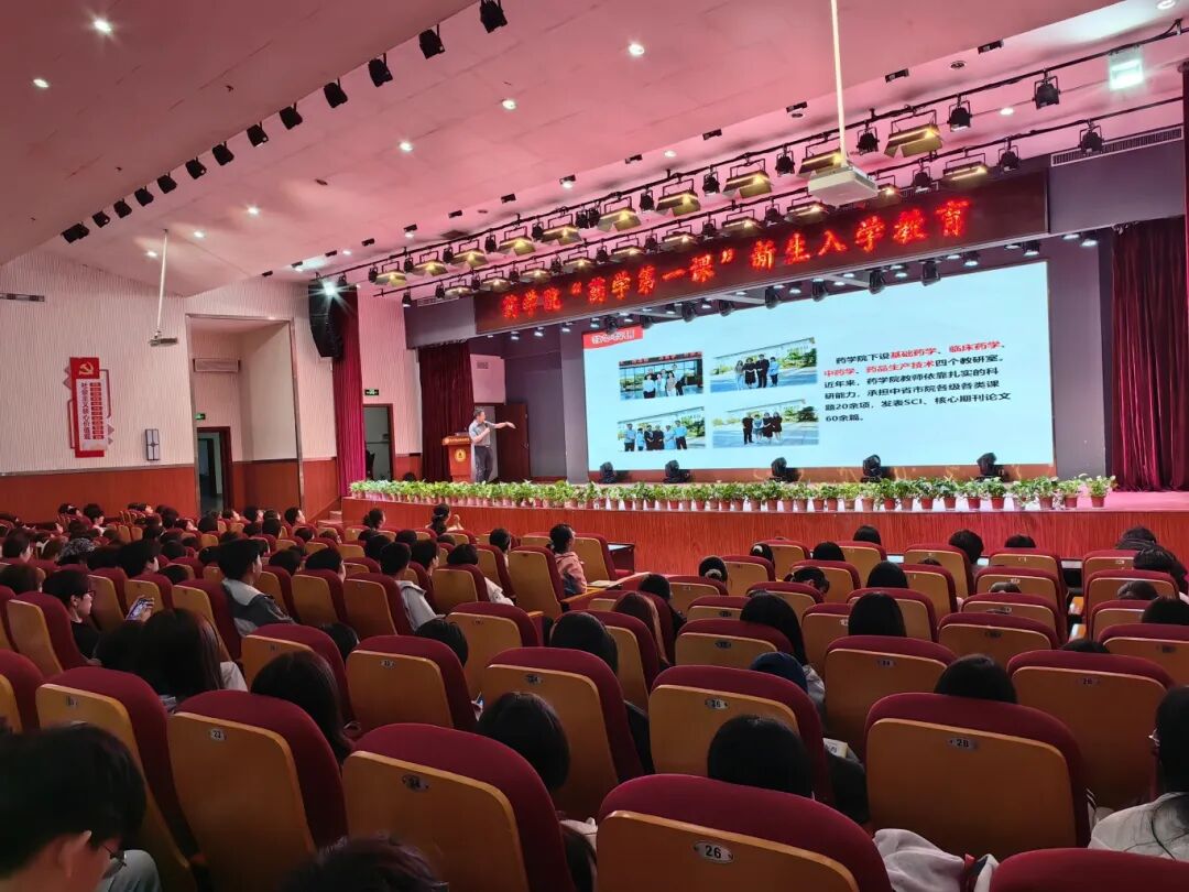 为帮助2025级新生尽快适应大学生活,科学规划学业生涯,抓住“拔节孕穗期”,尽快找到归属感。9月11日16:00,药学院在行政楼一楼多功能厅隆重举行“药学第一课”新生入学教育大会。药学院党政领导、2025级新生班班主任、学管办全体成员及全体新生参加,会议由药学院学生管理办公室副主任贾辰飞主持。