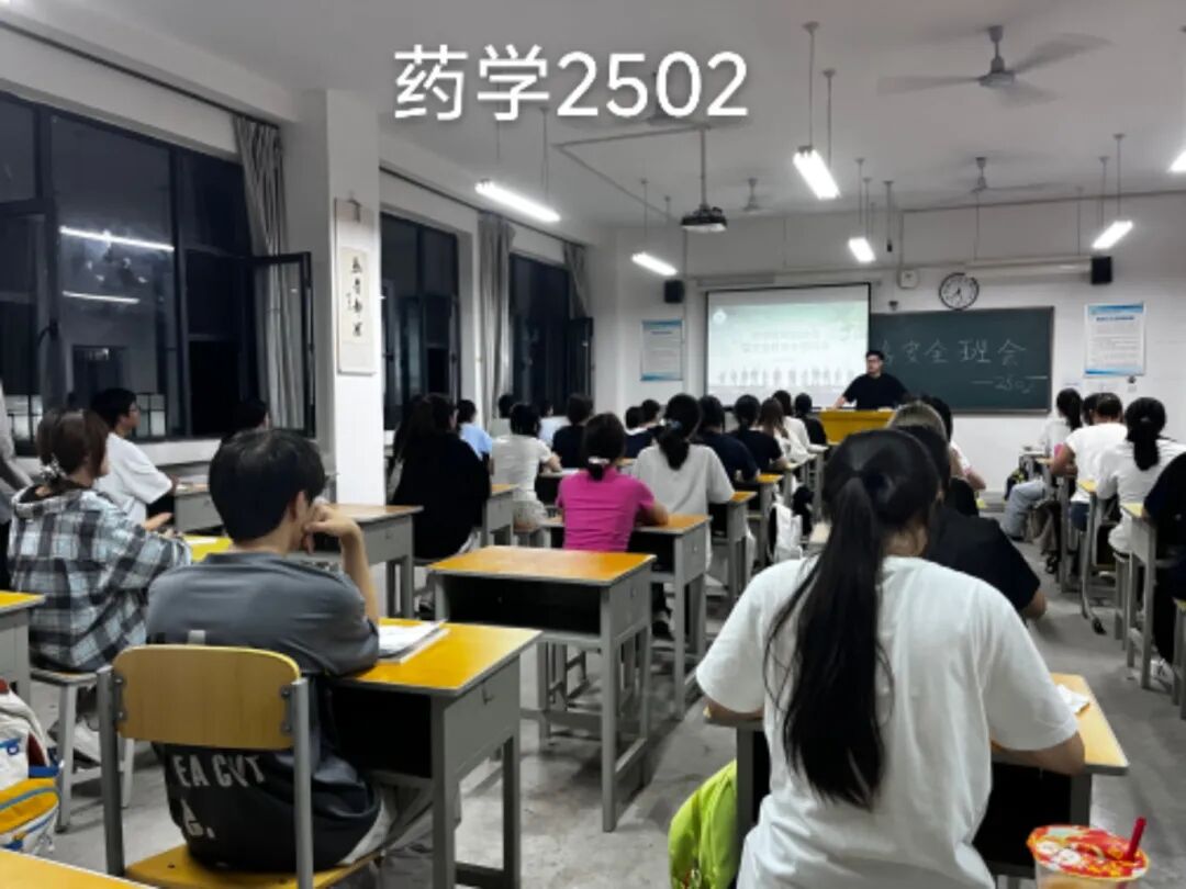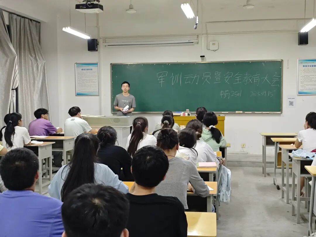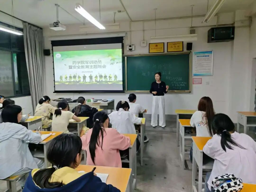 为深入贯彻新时代军事教育方针,深化国防安全教育,突出军训育人功能,2025年9月16日晚,药学院组织全体2025级新生班级召开军训动员暨安全教育主题班会。