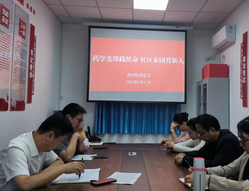为深入贯彻落实学院党委《关于建设党员先锋岗、党员责任区和党员示范区的实施方案》,进一步增强基层党组织政治功能和组织功能,推动党建与业务深度融合,9月17日下午14时,药学院党总支在学院“一站式”学生社区党员活动室组织召开“党员先锋践使命 社区家园育新人”工作部署会。药学院党总支全体党员参加了会议。
