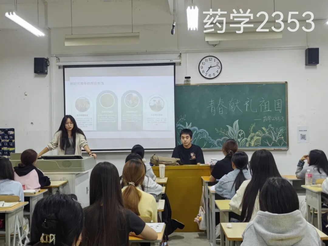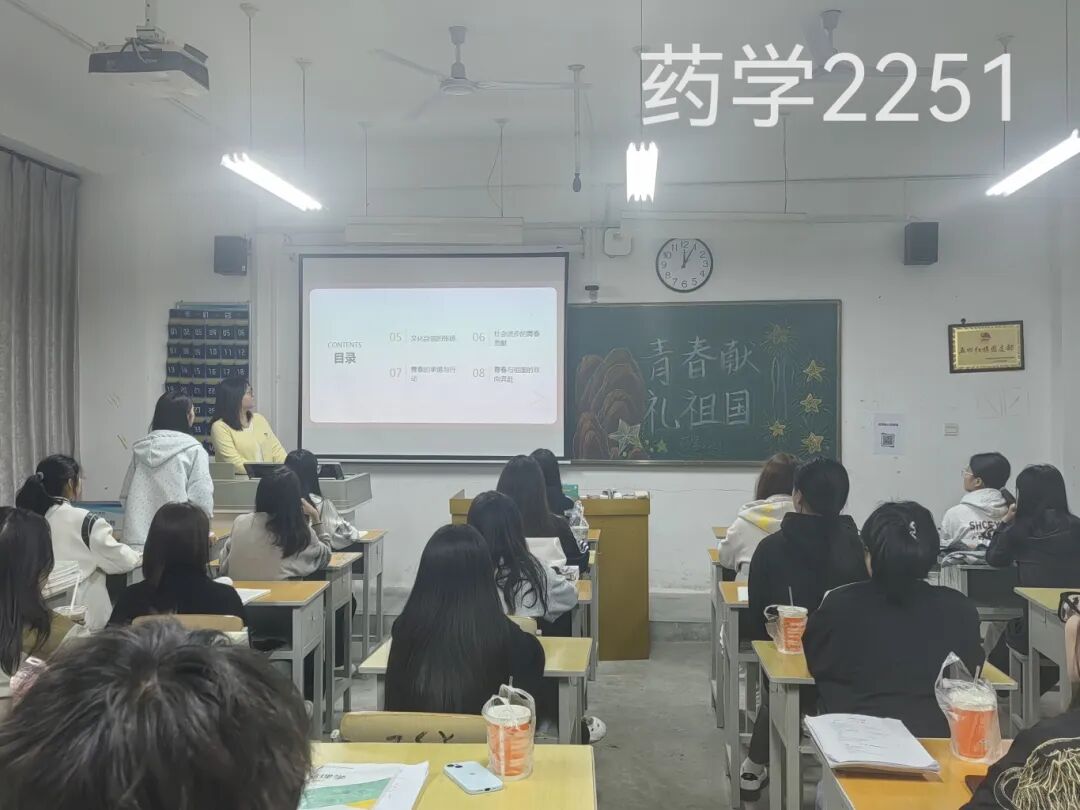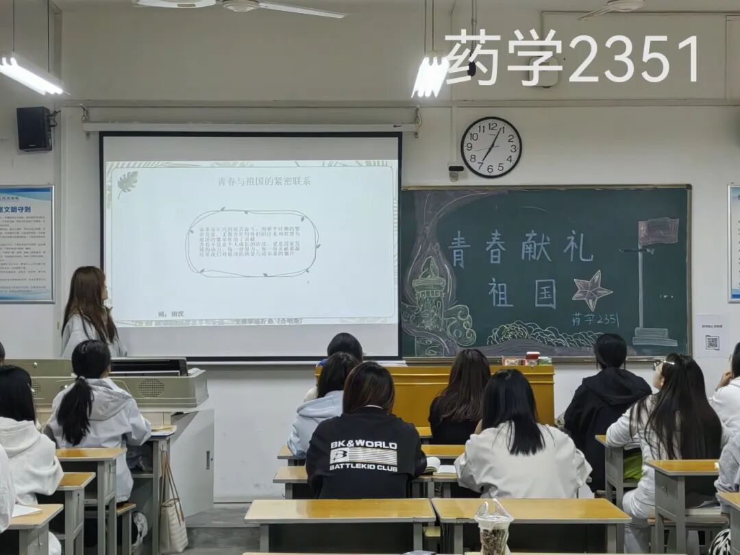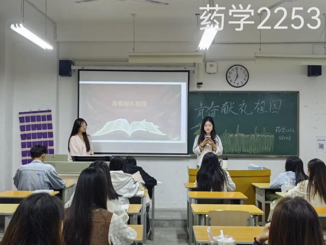 为隆重庆祝中华人民共和国成立76周年,深入推进铸牢中华民族共同体意识教育,纪念中国人民抗日战争暨世界反法西斯战争胜利80周年,激发广大团员青年的爱国热情和历史担当,2025年9月24日19时整,药学院团总支统一部署,精心指导所属各班级团支部同步召开了“青春献礼祖国”主题团会。