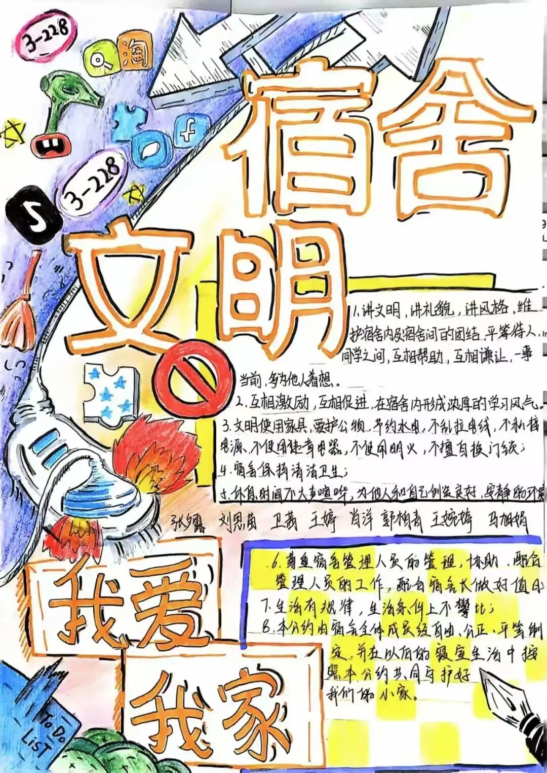 首先,宿舍公约的内容要符合学校规章制度和学院管理规定,由宿舍全体成员参与、创作。