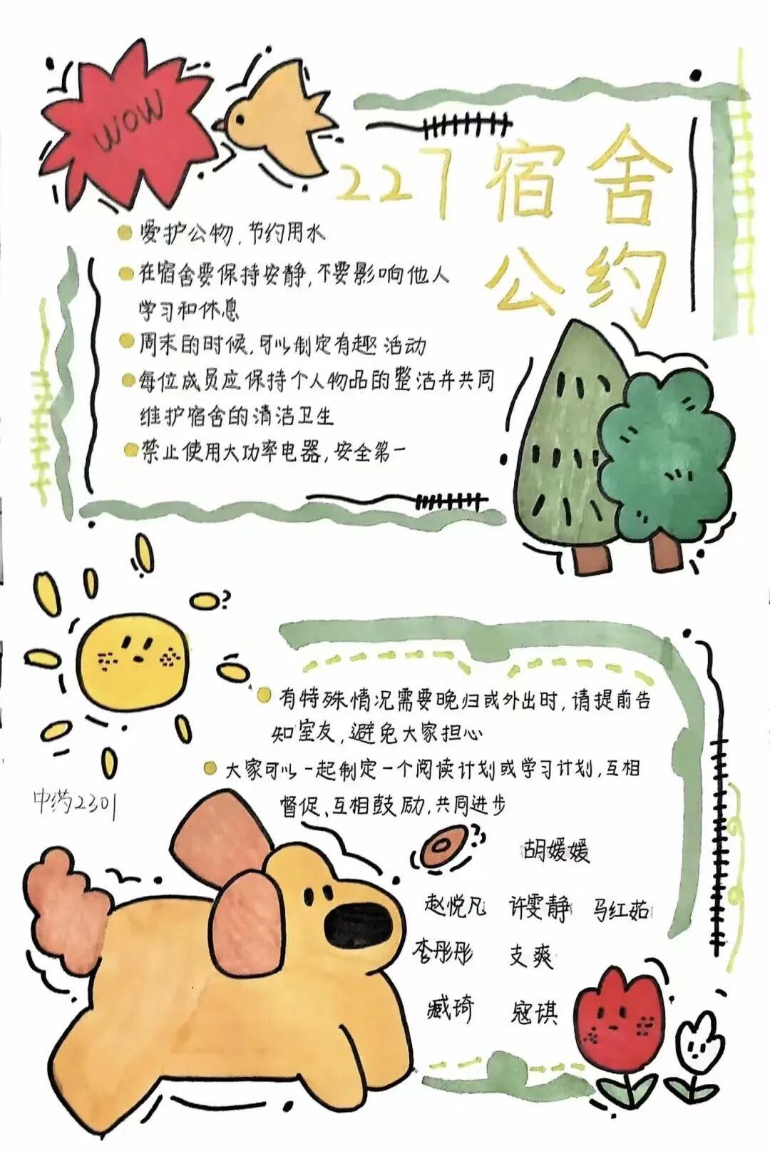 以下是部分优秀宿舍公约作品!各位同学可以以此为参考。