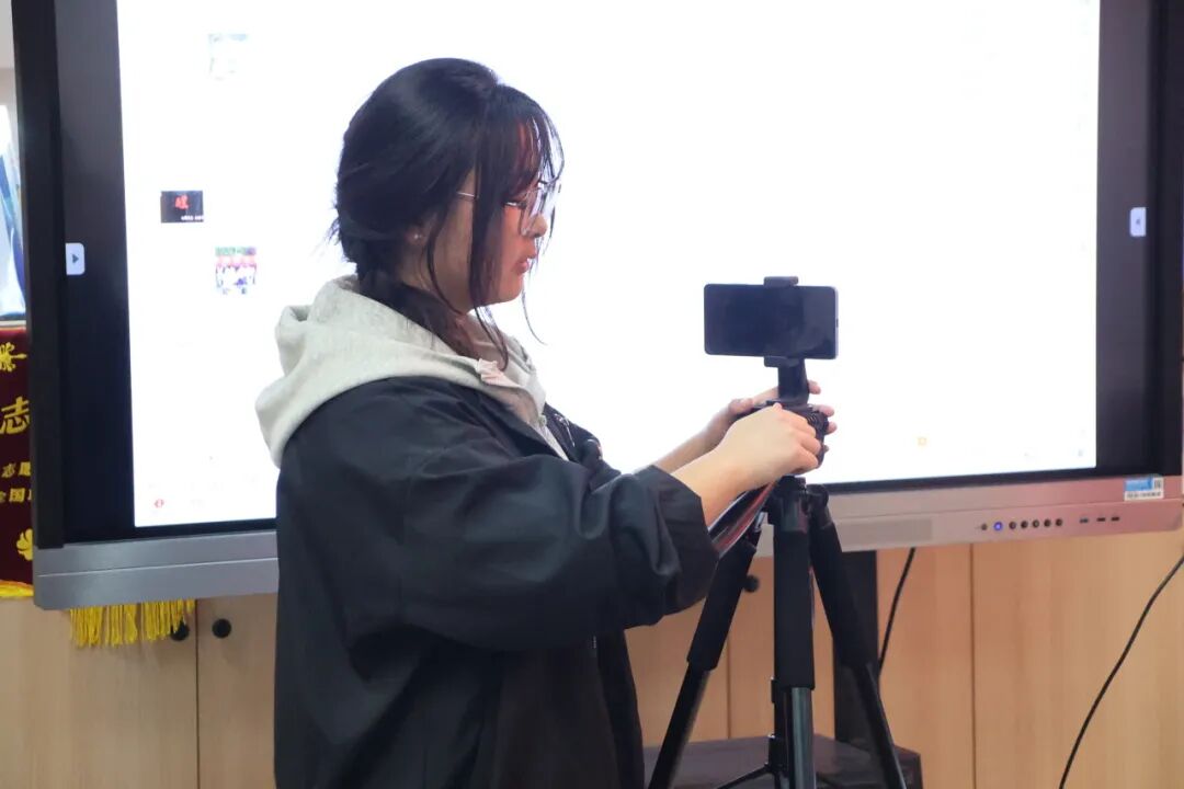以“分场景、讲功能、展实操”为核心,结合日常学生活动拍摄案例,演示运动场景稳定器动态运镜、结合三脚架固定机位的使用场景,边讲边展示设备操作细节,让大家直观感受不同场景镜头语言的魅力。