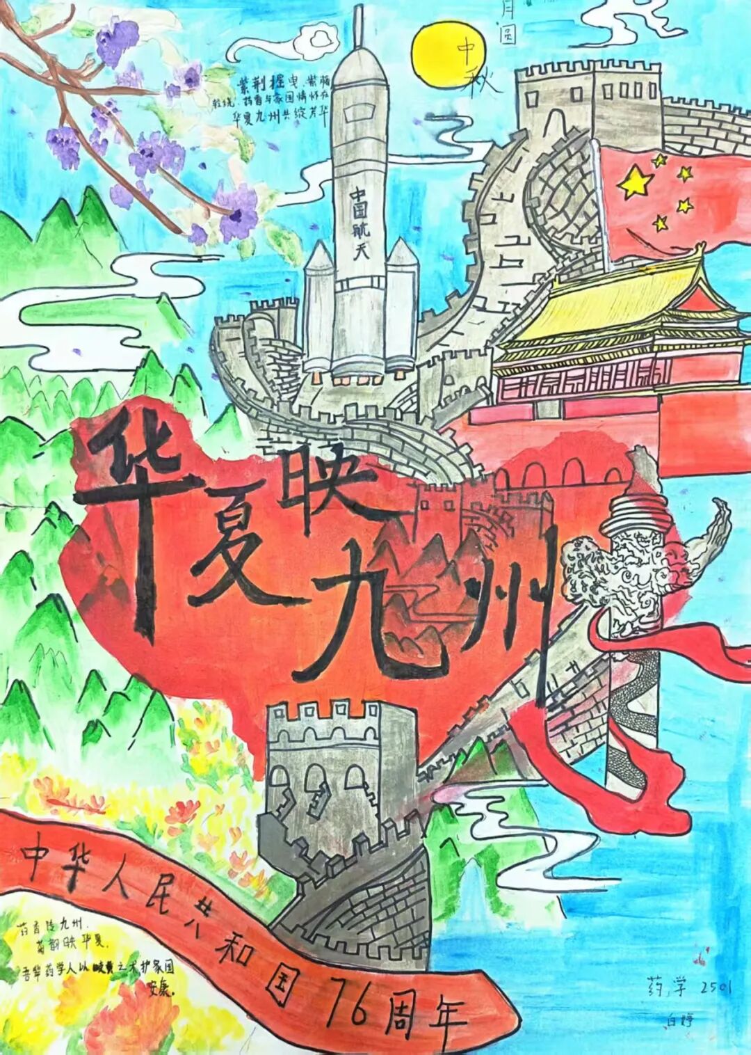 为喜迎中华人民共和国成立76周年华诞,欢度中华民族传统中秋佳节,深化爱国主义教育,弘扬中华优秀传统文化,丰富校园文化生活,展现药学院学子积极向上的精神风貌与艺术才华,药学院团总支决定组织开展“月圆映九州·华诞颂安康”主题书画作品征集活动。