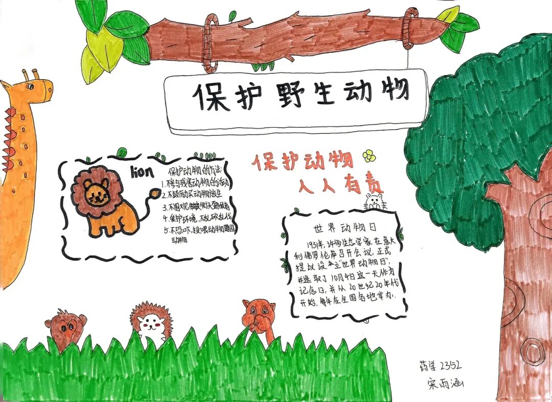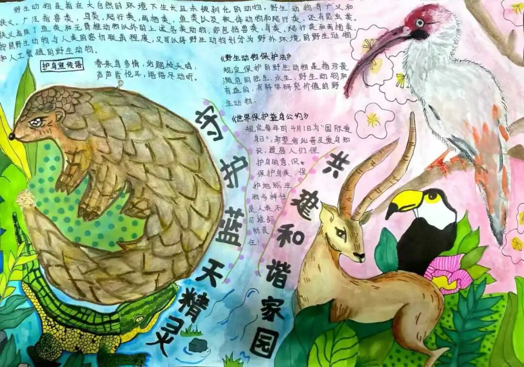 根据陕西省教育厅办公室《关于开展全省教育系统野生动物保护宣传月活动的通知》,为切实提升广大师生野生动物保护意识,围绕“守护蓝天精灵,共建和谐家园”活动主题,药学院组织开展保护野生动物手抄报征集活动,共收到来自23个班级的90余份作品,接下来,请跟药学君一起欣赏吧。