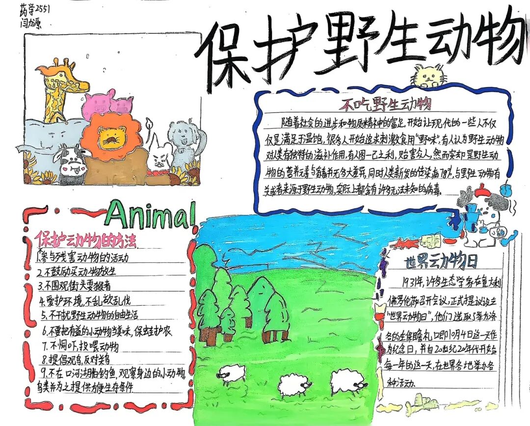 根据陕西省教育厅办公室《关于开展全省教育系统野生动物保护宣传月活动的通知》,为切实提升广大师生野生动物保护意识,围绕“守护蓝天精灵,共建和谐家园”活动主题,药学院组织开展保护野生动物手抄报征集活动,共收到来自23个班级的90余份作品,接下来,请跟药学君一起欣赏吧。