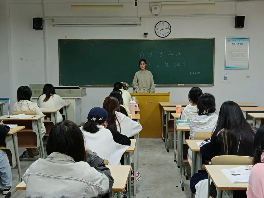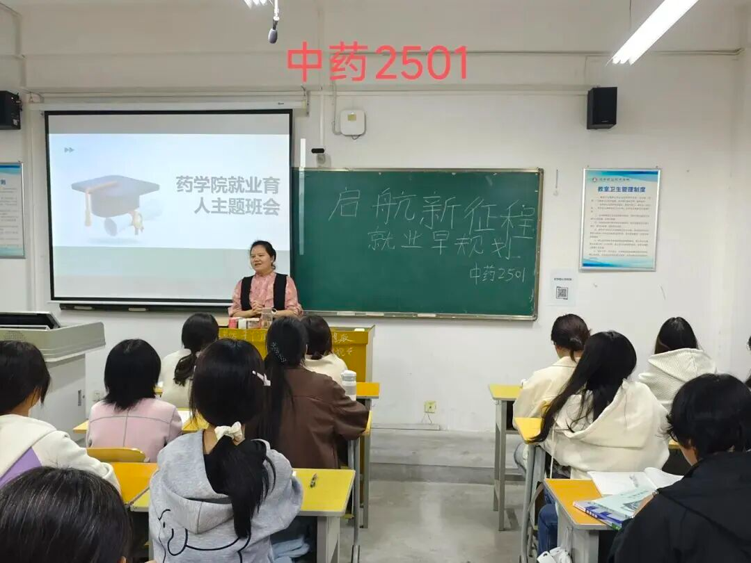 主题班会在各班级同步启动。各班班主任围绕药学专业特色,开展了内容丰富、形式多样的主题教育。班会内容包括:深入解读医药行业发展最新趋势与人才需求变化;详细介绍学院为提升学生就业竞争力组织的“企业HR面对面”“模拟面试工作坊”等品牌活动;系统讲解“大学生生涯规划书”的制定方法与要点。各班级创新活动形式,有的邀请优秀校友在线分享成长经验,有的组织小组讨论未来职业发展方向,现场互动热烈,学生参与度高。